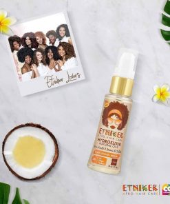 Many products claim to naturally repair and nourish your hair, yet many often fail to deliver. ETNIKER HYDROELIXIR is a fast-absorbing product which can be used on wet or dry hair for added moisture and shine. It is free from harmful ingredients that dry out the hair such as sulfates, mineral oil, salt, and parabens. HYDROELIXIR is enriched with a variety of high-quality NATURAL OILS such as COCONUT, SHEA BUTTER, OLIVE, MACADAMIA, and MONOI OIL, which help moisturize, protect, and repair afro-textured hair. HYDROELIXIR is formulated with a unique blend of 13 NATURAL OILS that deeply NOURISH dry, porous, damaged, and limp strands, helping to restore a natural shine and bounce to each curl. HYDROELIXIR helps fight frizz, and leaves hair feeling healthy and hydrated, WITHOUT ANY GREASY RESIDUE. -THE HYDROELIXIR IS FREE FROM SULFATES, MINERAL OIL, SALT, AND PARABENS. -How to use: First wash hair with ETNIKER’s NOURISHING SHAMPOO, followed by ETNIKER’s DEEP CONDITIONING MASK. Then, remove excess water and apply 3-5 drops of HYDROELIXIR to the palm of your hand. Warm up product between hands and evenly distribute throughout the hair starting at the ends and moving onto highly porous sections that are subjected to greater wear and tear. DO NOT RINSE. -Important note: After applying HYDROELIXIR to hair, do not use flat iron, curling iron, or any other heat styling tool, as this may cause damage to the hair shaft. – Caution: Keep out of reach of children. Keep out of eyes, may cause irritation. Rinse eyes thoroughly with water in case contact occurs. Discontinue use if irritation develops. For external use only. Store at room temperature and keep out of direct sunlight. -Active ingredients: Coconut & Shea Butter. -FREE FROM salt, sulfates, and parabens.
