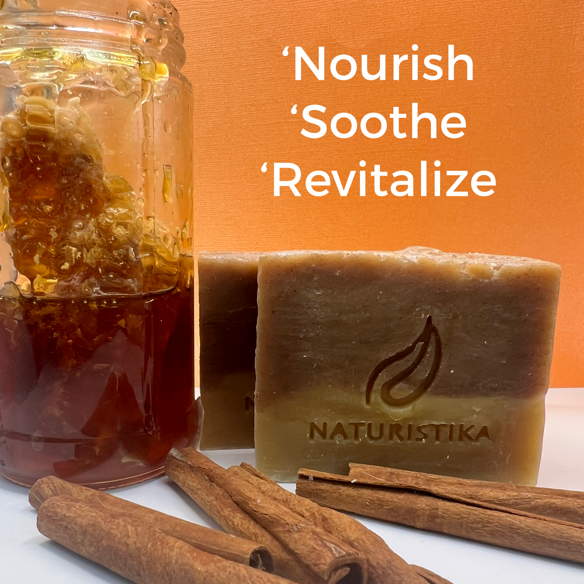 Experience the luxurious CinnaBee Cinnamon Honey Handmade Soap Bar, crafted with all-natural, organic ingredients to nourish and revitalize your skin. Made in small batches using traditional cold process methods, this artisanal soap blends beeswax, cinnamon essential oil, and honey for a rich, creamy lather with a subtle, warm aroma. Infused with cinnamon essential oil, it calms dry skin, eases aches and pains, helps with acne and rashes, and enhances circulation. Beeswax and honey provide deep moisture, leaving your skin soft, hydrated, and glowing. Gentle enough for all skin types, this soap bar cleanses your face and body without stripping natural oils. Inspired by Bali’s natural beauty, CinnaBee is perfect for adding warmth and positivity to your daily routine. Ideal as a thoughtful gift or a personal indulgence, this handmade soap will leave your skin feeling nourished, refreshed, and rejuvenated. Ingredients: Olive Oil, Organic Palm Oil, Organic Coconut Oil, Organic Shea Butter*, Organic Sunflower Oil, Beeswax, Cinnamon Essential oil, Honey, Ground Cinnamon.